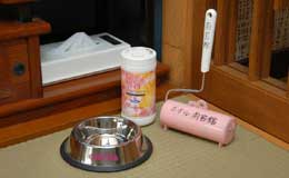 ・毛取り用コロコロ、ペット用食器、ウェットティッシュを部屋に常備しております。