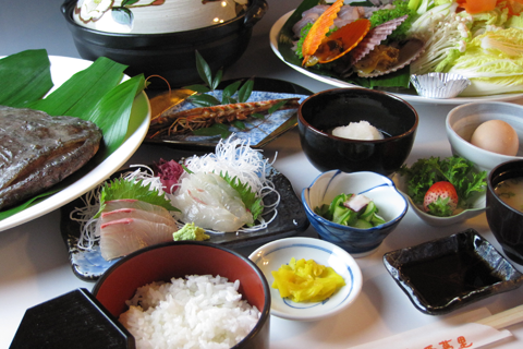 お食事は「お刺身定食」を準備しておりますが、生ものが苦手な方など食べることができない方は予約時にお申し付けください。