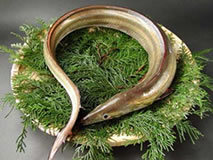 五月中旬のはも祭りを皮切りに、鱧の季節が訪れます。鱧は春になると外海から淡路島沿岸に回遊し、夏の産卵に向けて活発に餌を食べ、体に栄養を蓄えます。「梅雨の水を飲んで育つ」と言われる夏の鱧は、身は太り脂がのってひときわ美味しさを増します。その身は淡白で、湯引き・天ぷら・蒲焼とどんな食べ方でも楽しめます。「はもすき」の始まりは沼島の漁師料理といわれ、旬の鱧とたまねぎを使った、淡路島特有の食べ方です。