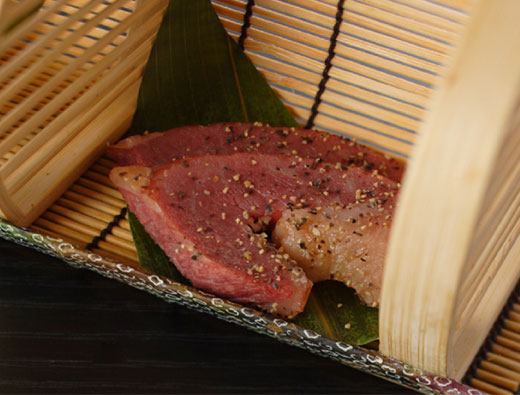 当社特注・厳選米沢牛のスモークをはじめ、特製珍味むかごの田楽、栗の渋皮煮等、昔懐かしい郷土料理、甘味等手作りの味をお楽しみいただけます。